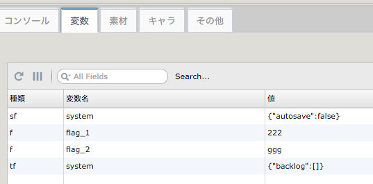 デバッグモードにおいてゲームで設定したフラグの状態などを、ゲームをプレイしながら確認できます。