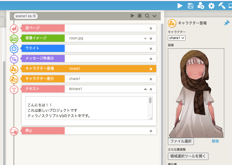 これで、準備が完了したのでティラノビルダーでの操作での操作に移りましょう。