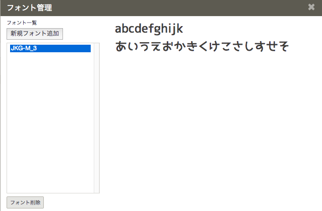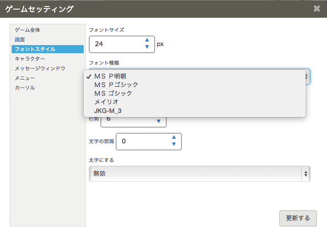 フォントの種類から先ほど追加した「JKG-M_3」を選択して、更新するをクリックします