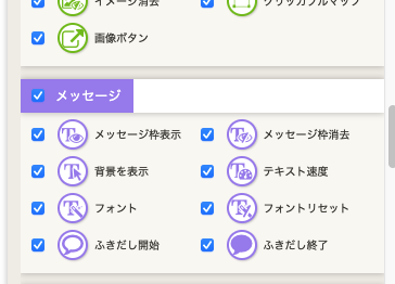 まだ、普通のノベルゲーム風の会話ですね。これを漫画のふきだし風に変更してみましょう。