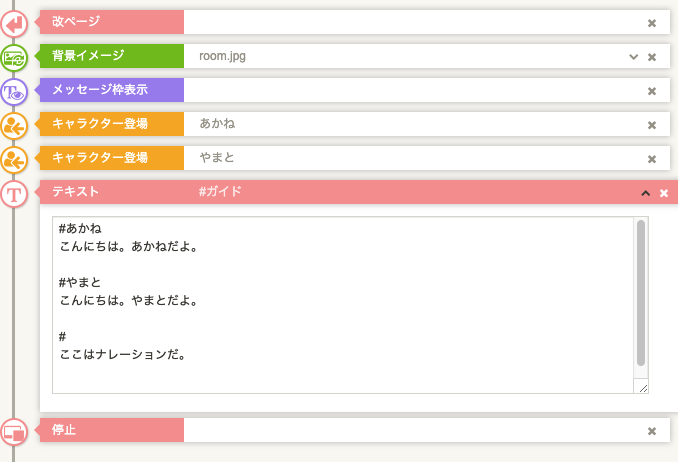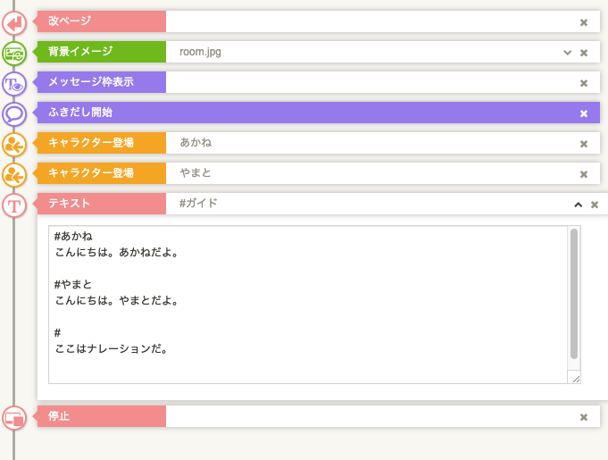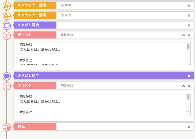 最後に、ふきだしと通常のメッセージを交互に表示させる方法もみておきましょう。