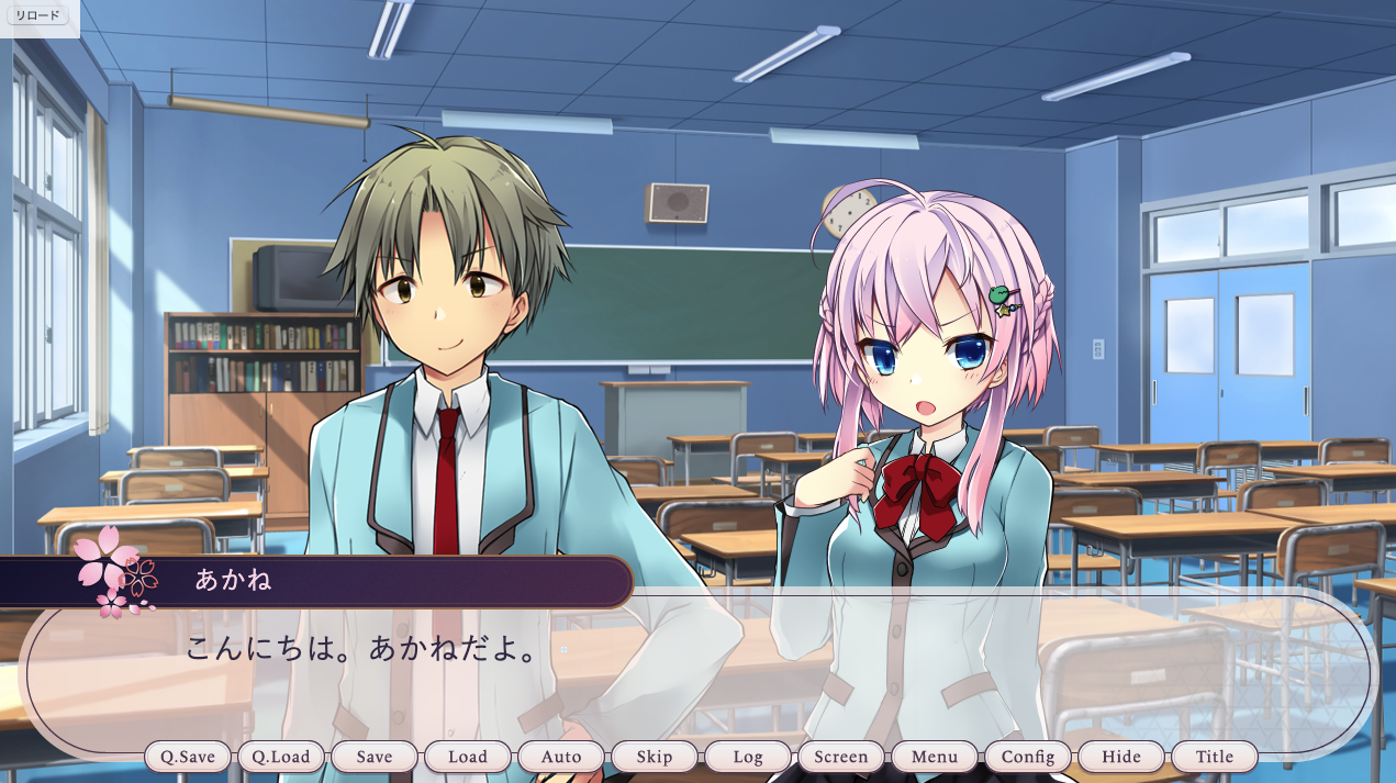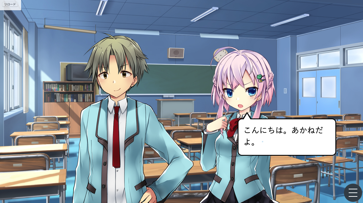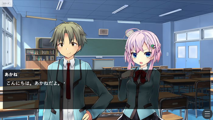 最初に、簡単な会話シーンをつくっておきましょう。キャラクター2人を画面に登場させて、簡単な会話をするだけのシンプルなものです。