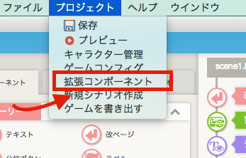 まず、メニューから [プロジェクト]-[拡張コンポーネント]をクリックします