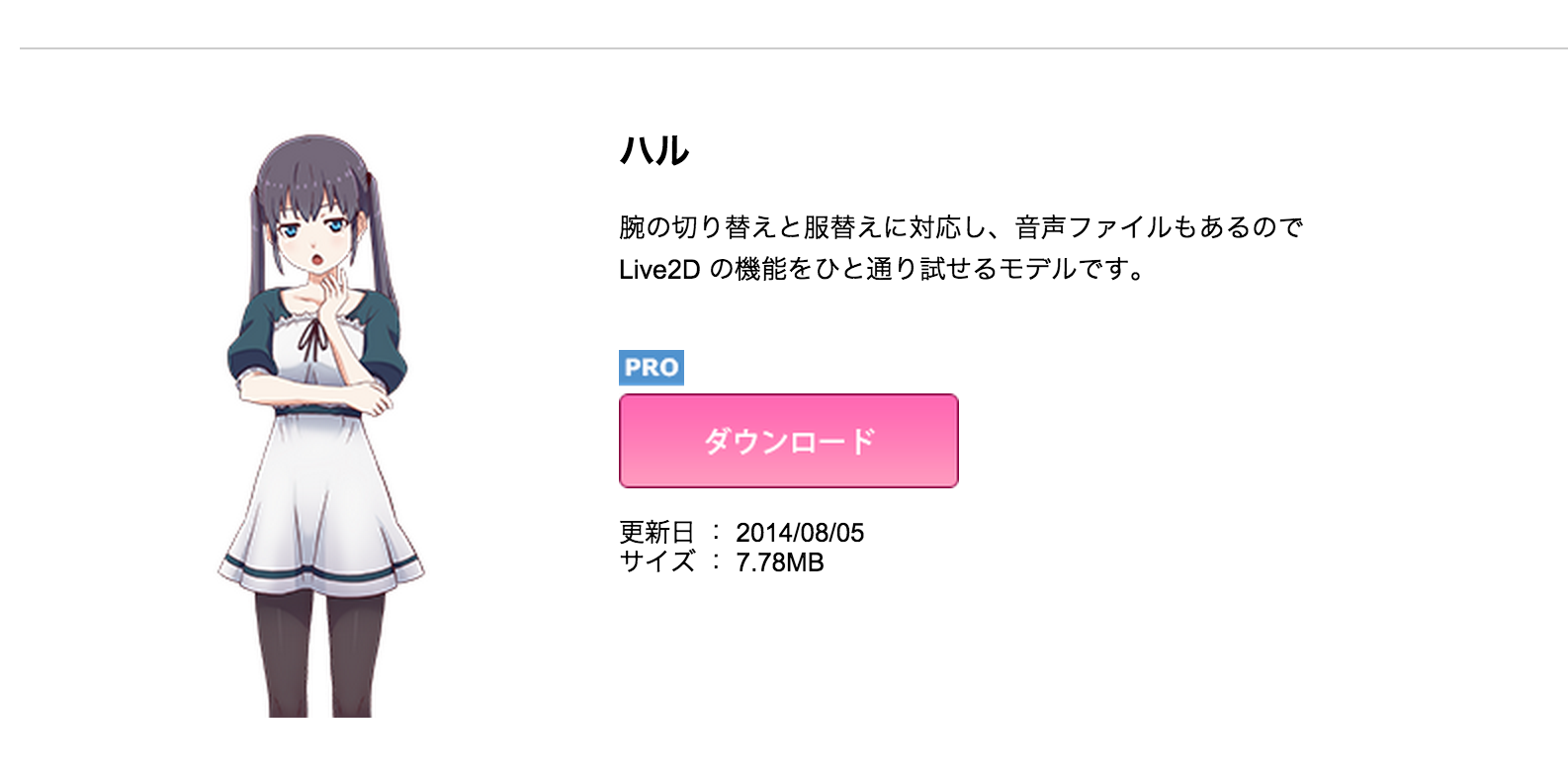以下のURLに移動して、好きなLive2Dモデルをダウンロードして下さい。