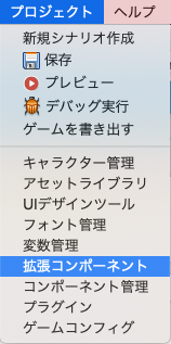 まず、メニューから [プロジェクト]-[拡張コンポーネント]をクリックします