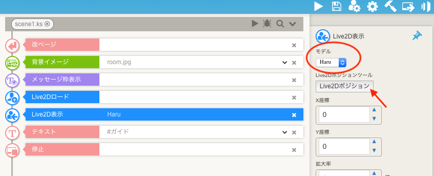 その他にも、キャラクターを退場させるときは「Live2D消去」位置を移動させるときは「Live2D移動」コンポーネントが便利です。