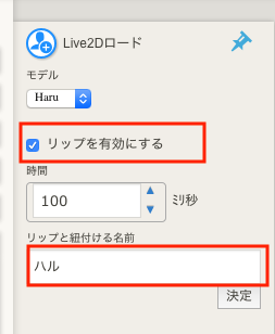 まず「Live2Dロード」のときに「リップを有効にする」にチェックを入れてください。