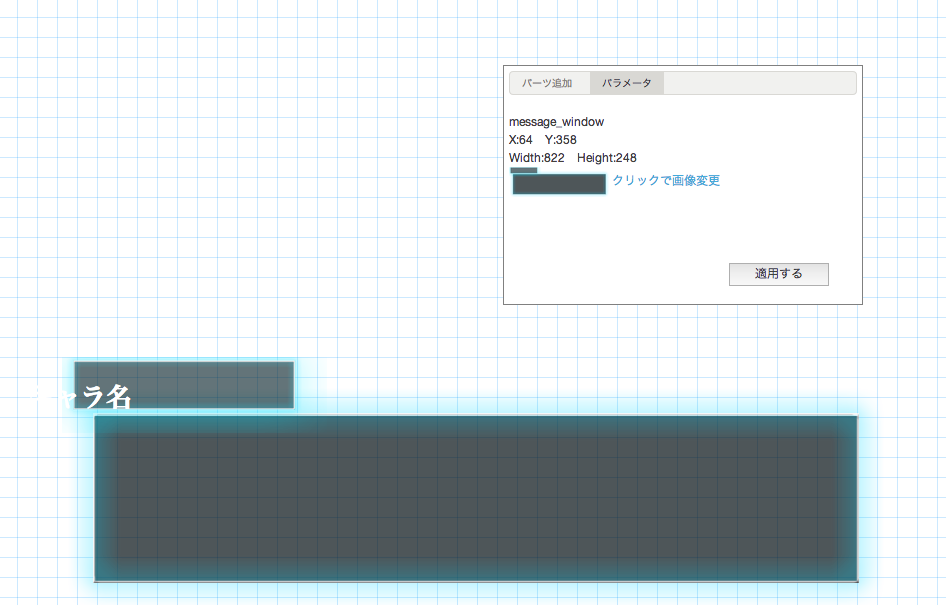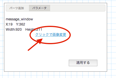 ボタンをクリックすると、操作パネルに情報が表示されるので、「クリックで画像変更」から変更できます。