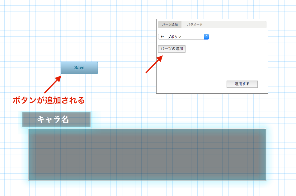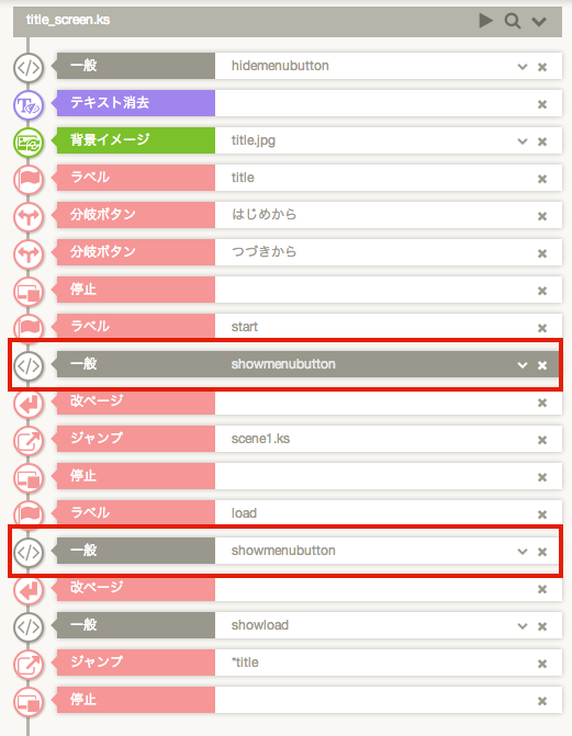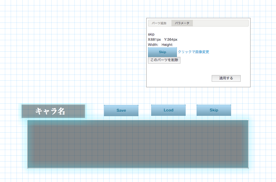 同じようにして、ロードやスキップといった、ボタンも追加してみましょう。
