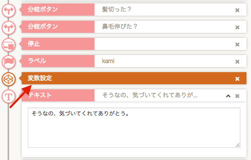 この章では②の変数管理機能を使ったフラグ管理を試してみます。
