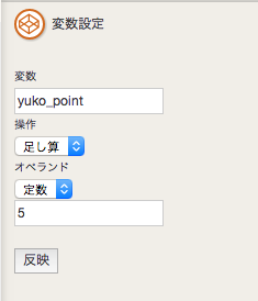 変数名に「yuko_point」と入力後、「追加」ボタンを押します。