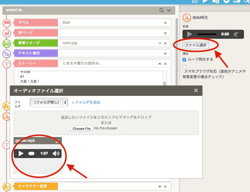 次に音楽を再生するための作業ですが、画像追加の時と同様の手順になります。
